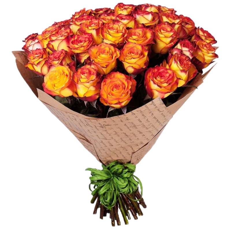 Букет из 31 оранжевой розы в крафте