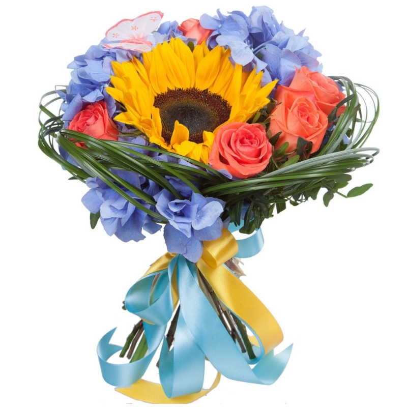 Гортензия 1 шт., Подсолнух 1 шт., Роза 5 шт. |